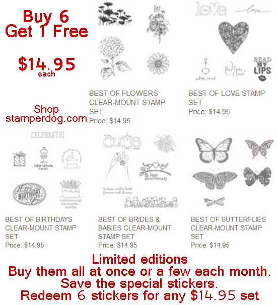 They all come with special collector stickers. And you can download your special collector card here. Once you’ve bought any 6 of the “Best Of” Limited Edition Collector’s Sets, just attach your stickers to the card and mail it in to Stampin’ Up!. Then pick ANY set from our new 2013-2014 catalog for FREE! Woo hoo! Gotta love that!