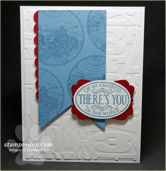 Don’t you like all that texture?  The Alphabet Press Embossing Folder, the Banners Framelits and  the Big Shot are a marriage made in heaven!  Got your Big Shot yet?  It’s the perfect machine!  It works quietly and without electricity so Ann can use it while I’m sleeping.