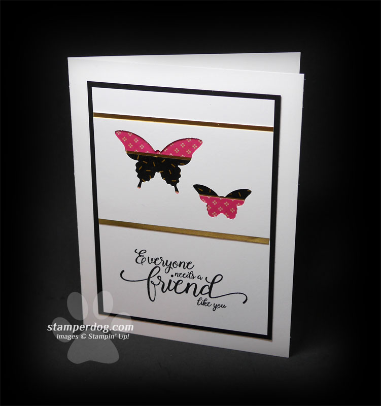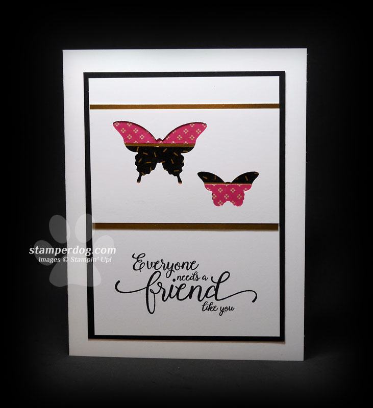 And doesn’t pink, white, black and gold make a statement? YUM! Perhaps we’ll have to earmark this for our May stamp club project.