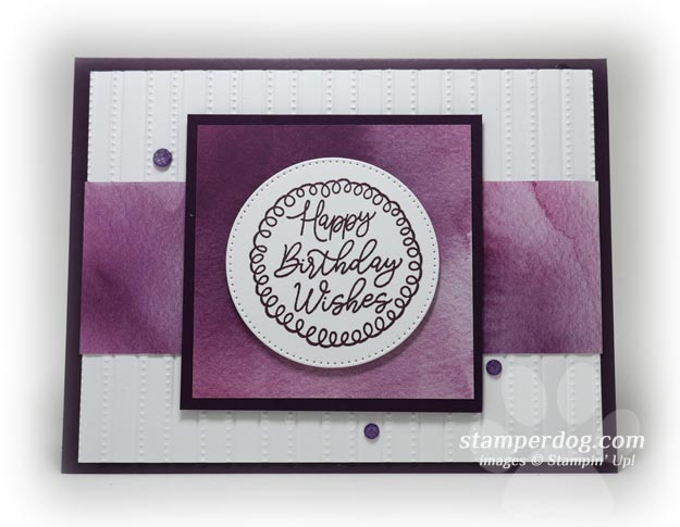 It looks almost like black here, but the dark colored base and layers are all Blackberry Bliss. If you look really closely, you’ll notice that Ann embossed the Basic White Layer with the Lovely Stripes 3D Embossing Folder.